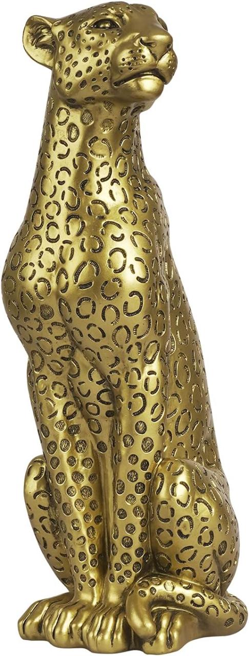 高さ約28cm ゴールド風 座るチーターフィギュア リアルアンティーク クラシカルヒョウ彪動物彫刻置物オーナメント彫像 ホームデコレーション フィギュア ポリレジン製 オフィスデスクトップ書斎ギフト贈り物プレゼント 輸入品