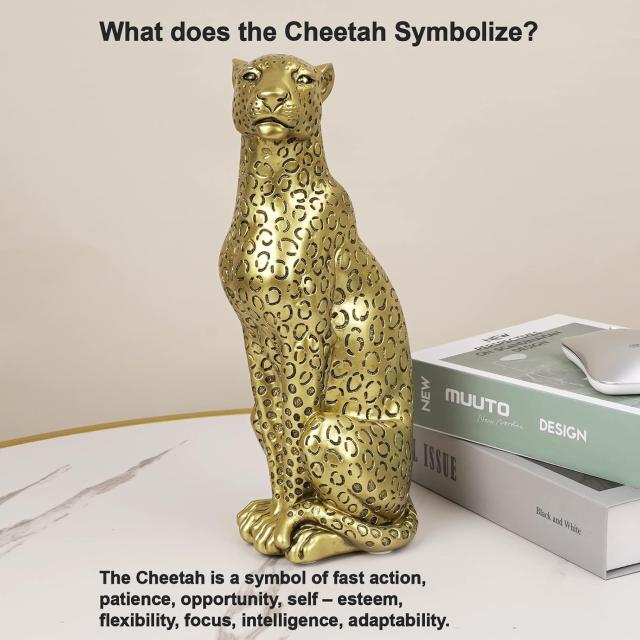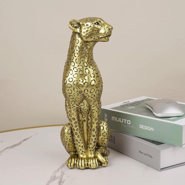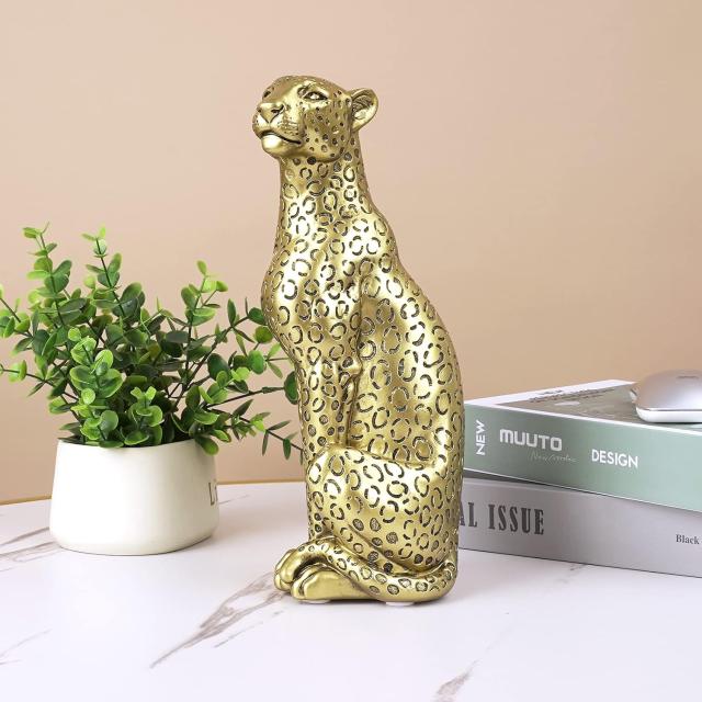 ----------------------Modern Polyresin 11" H Gold Cheetah Figurine Sitting Home Decor Realistic Antique Classical Leopard Resin Animal Ornament Statues Living Room Decor Ornament Figures