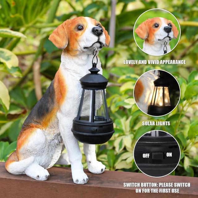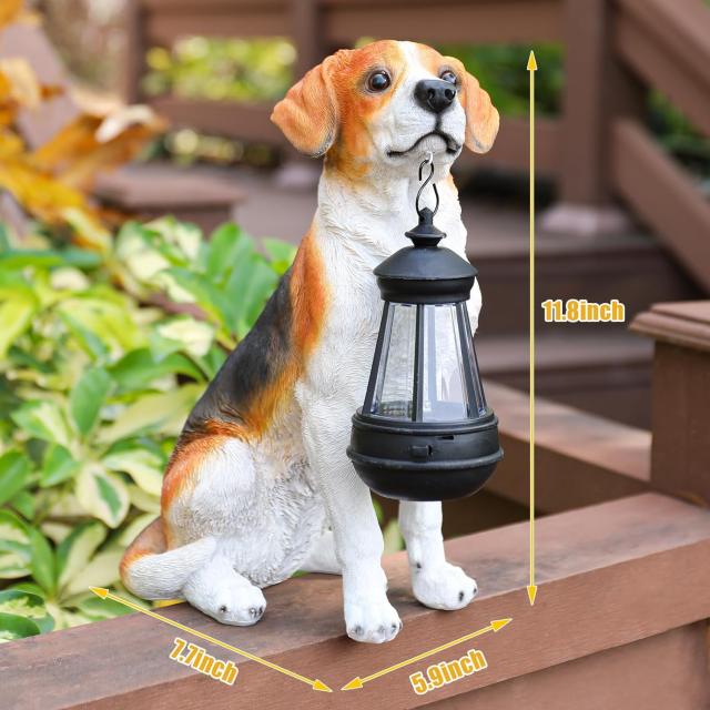 ソーラーランタンを咥えた、ビーグル犬屋外装飾 LEDライト 屋外ガーデン デコレーション装飾置物パティオ、芝生、庭アート デコ 新築祝いプレゼント贈り物 輸入品