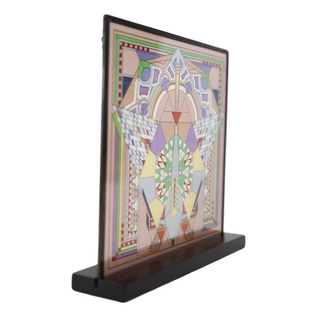 フランク・ロイド・ライト「帝国ホテル ピーコックラグ(孔雀敷物)デザイン」ステンドグラス ウォール デスクトップ ステンドグラスアート メタルフレームと木製ベーススタンド 建築 オフィス装飾アクセント インテリア リビング 書斎 贈り物プレゼント 輸入品