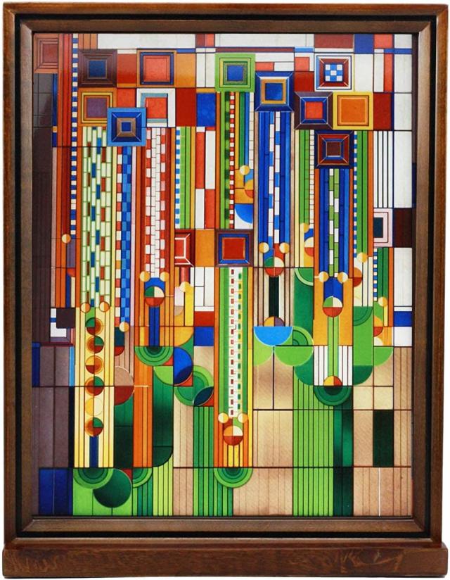 フランク・ロイド・ライト「トーマス・エントリー・シーリング・ライト」ステンドグラスウォール デスクトップ ステンドグラスアート メタルフレームと木製ベーススタンド建築 オフィス装飾アクセント インテリア リビング 書斎 贈り物プレゼント 輸入品