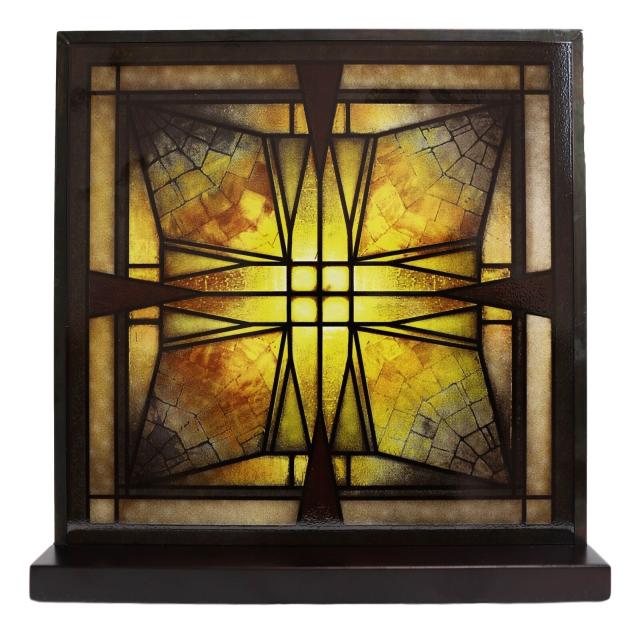 フランク・ロイド・ライト「トーマス・エントリー・シーリング・ライト」ステンドグラス グラスアートメタルフレーム木製ベーススタンド輸入品