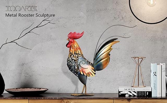 ----------------------Too-arts Metal Sculpture Carved Iron Rooster Home Furnishing Artwork Craft Gifts