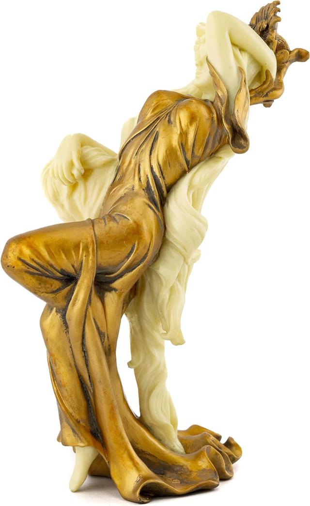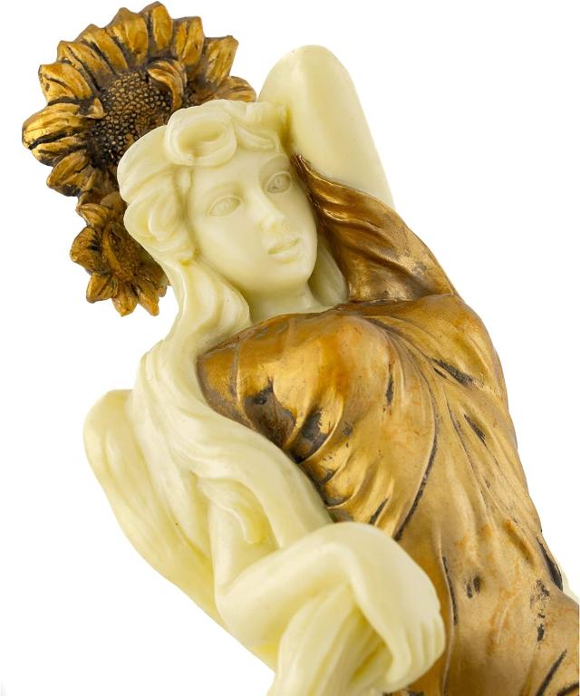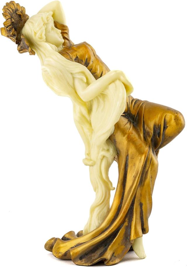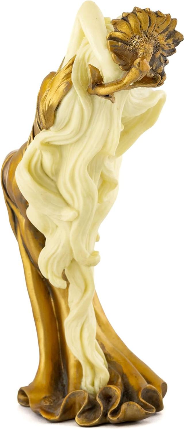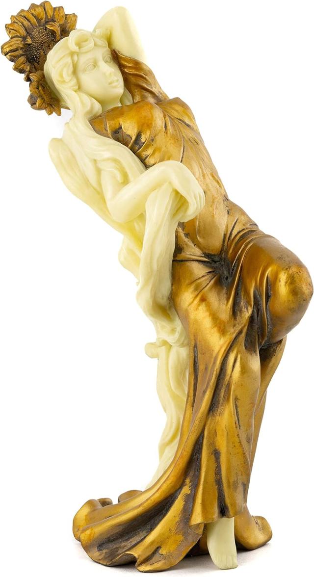----------------------Top Collection Art Nouveau Posing Lady Statue- Hand Painted CollectibleNew Art Deco Sculpture in Golden Dress- 8.75-Inch Alphonse Mucha SummerFigurine