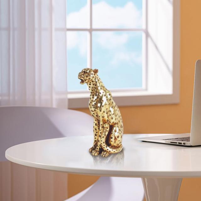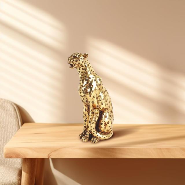 座っているヒョウの彫像彪彫刻ゴールドカラー高さ約26.5cmホームオフィス装飾友人家族への最高の贈り物アート工芸輸入品