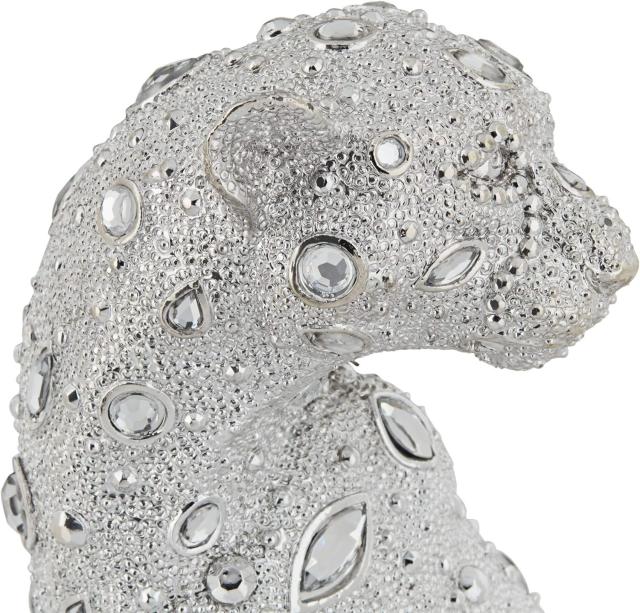 この現代的なヒョウの彫刻は樹脂構造で作られ、電気メッキのシルバー仕上げで覆われています。ヒョウが持つ特質を物理的に思い出させるために、この作品を、家のどこにでも置いてください。この彫刻は、コンソールテーブルやエンドテーブルの上に設置できるスタイリッシュな外観です。