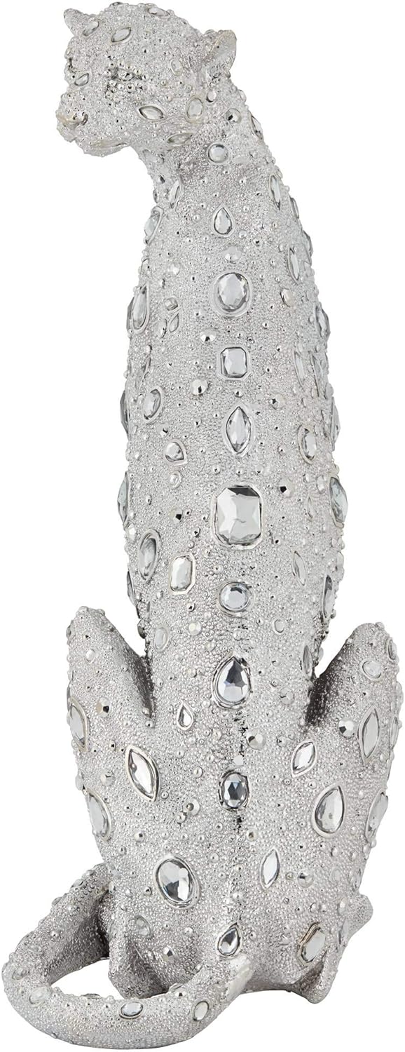 スタジオ55D製 座る、彪 ヒョウ 高さ 40.6cm ハイシルバー彫像 インテリア装飾アート工芸置物 ホームアニマル動物フィギュアプレゼント輸入品