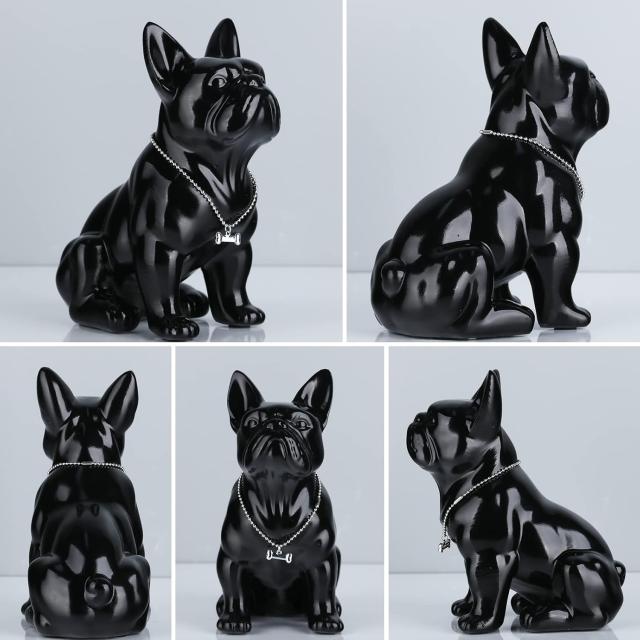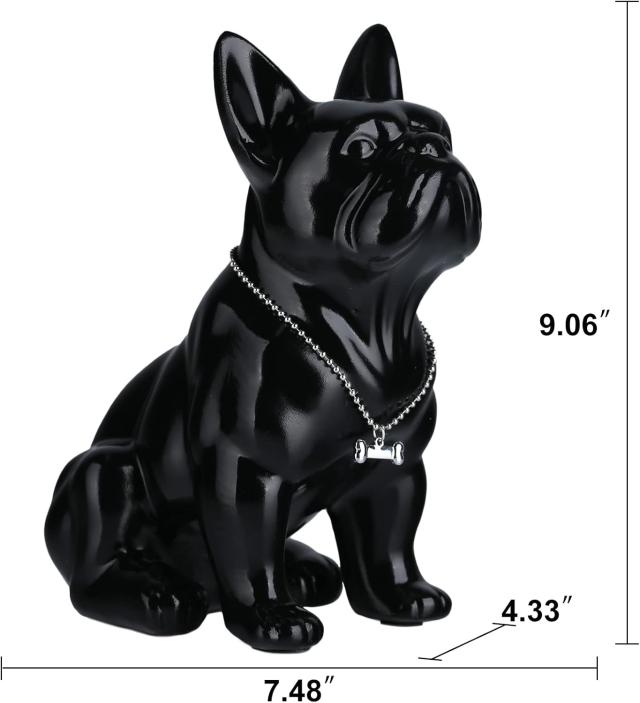 suruim Resin English Bulldog Statue French Bulldog Sculpture Home DecorModern Collectible Figurine Art Dog Statue Bulldog Figurine Living RoomTabletop Decor (Black, 9 inches)