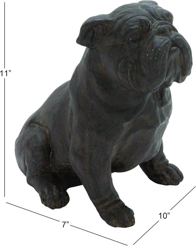 Deco 79 Polystone Bulldog Decorative Sculpture Distressed Sitting HomeDecor Statue, Accent Figurine 10" x 7" x 11", Brown