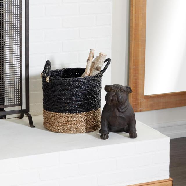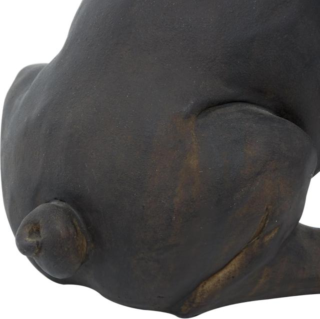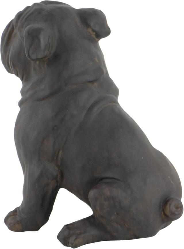 座っているブルドッグのフィギュアは、マットブラックとダークブラウンの仕上げをミックスし、テクスチャーのハイライトが施されています。