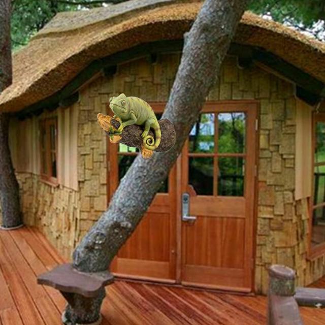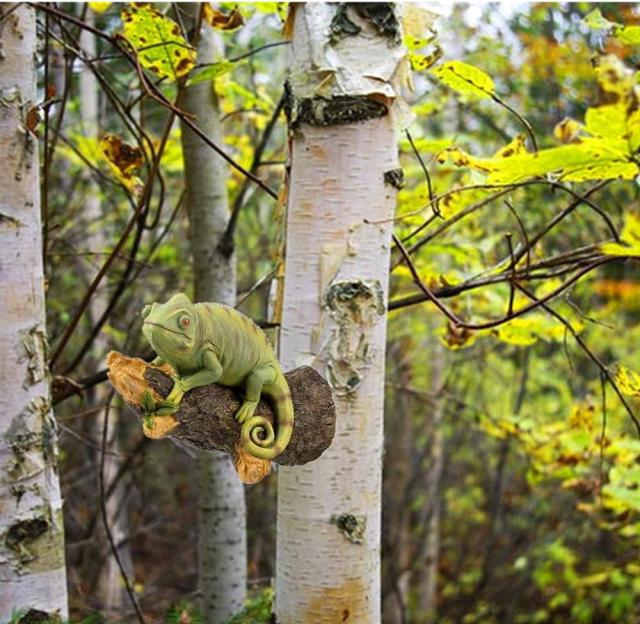 かわいい吊り下げ式カメレオンのアート装飾は鮮やかなデザインで、力強く威圧的で活力に満ち、庭や裏庭を飾るより親密な雰囲気を作り出します。