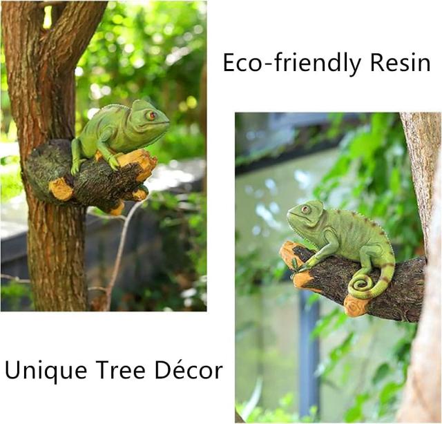 Tree Hugger Sculpture Chameleon Statues, Garden Peeker Cute Vividly Hanging Green Lizard Art Decor Figurine Ornament for Indoor Outdoor Yard Tree Decorations (Chameleon)