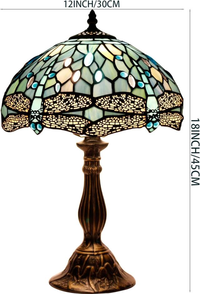 ----------------------WERFACTORY Tiffany Lamp Sea Blue Stained Glass Table Lamp 12X12X18 Inches Dragonfly Style Desk Reading Light S147 Series