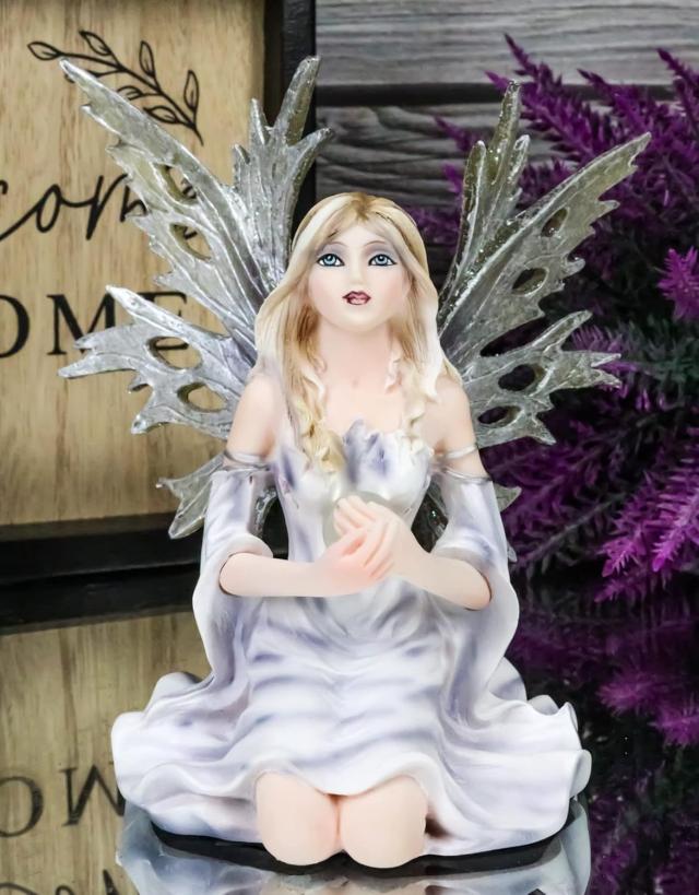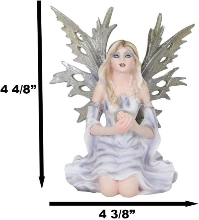 -------------------Ebros Gift Kneeling Frost Flake Icicle Oracle of The Stars Winter FrozenFairy Holding Crystal Ball Figurine 4.5" Tall Fairy Garden FaerieFantasy Sculpture