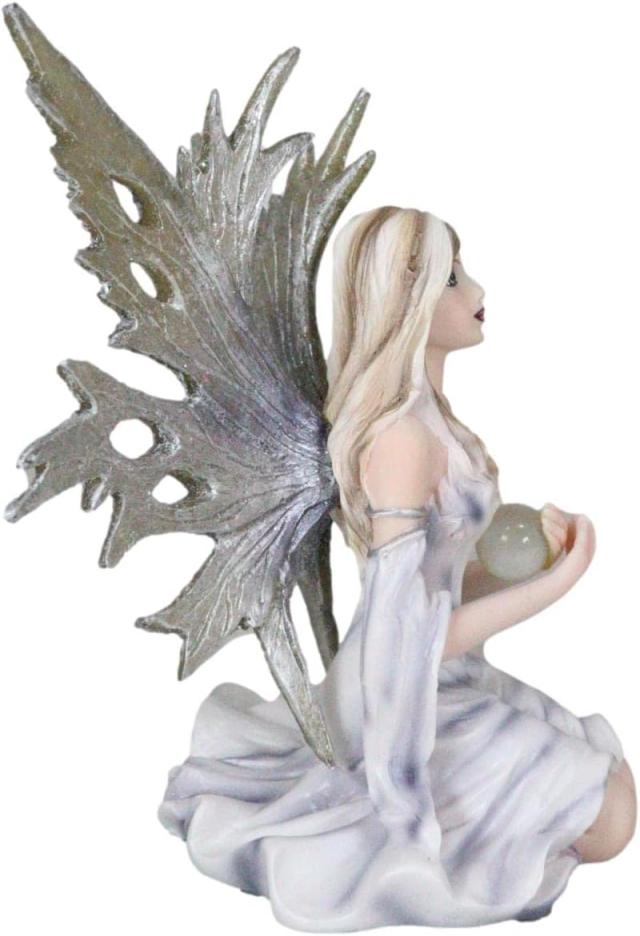 つらら星の神託を現わす 水晶玉を持って、ひざまずく、氷と霜の薄片の白い妖精彫像 高さ 11.4cm 妖精の庭のファンタジー彫刻置物 プレゼント贈り物 輸入品