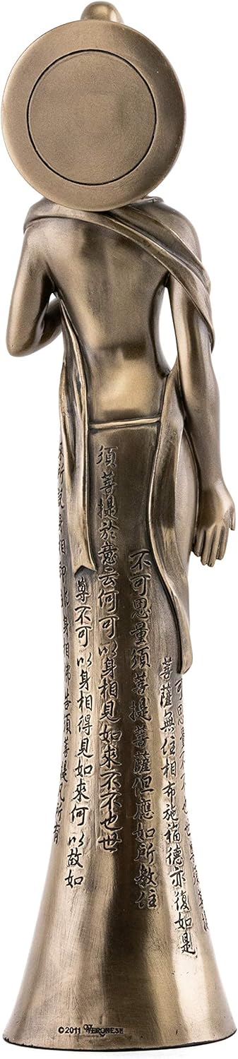 -------------------Top Collection Slim Quan Yin with Diamond Sutra Statue- Kwan Yin Goddessof Compassion and Mercy Sculpture in Premium Cold Cast Bronze- 11.25-InchCollectible Avalokitesvara Figurine