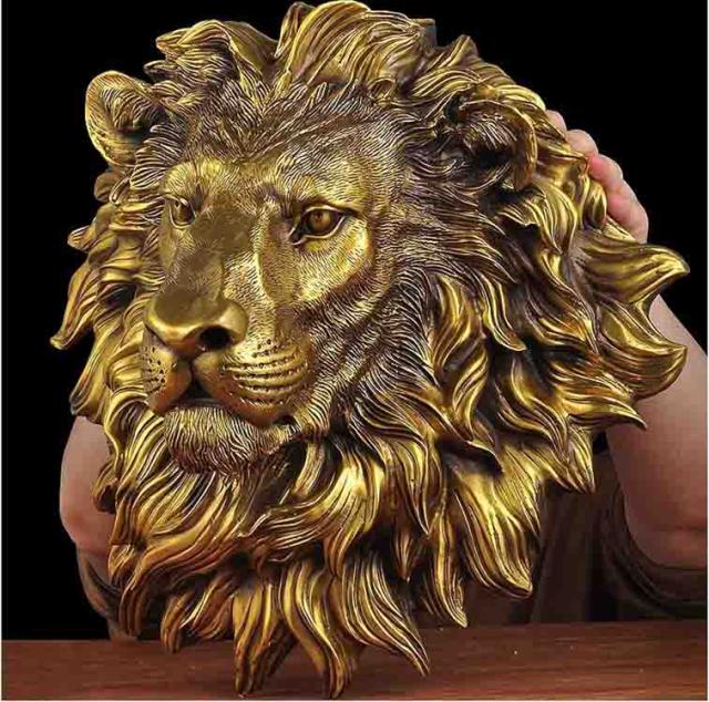 アフリカ百獣の王ライオン頭部壁彫刻ヘッドバスト動物彫像高品質ロストワックス製アート工芸玄関新築祝い贈り物輸入品