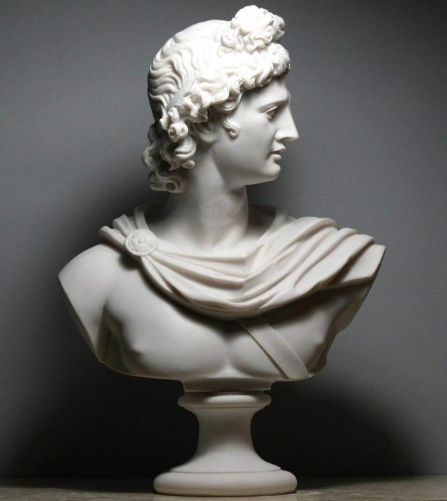 ----------------------APOLLO Greek Roman God Bust Head Statue Cast Marble Sculpture Handmade20.8 inches / 53 cm