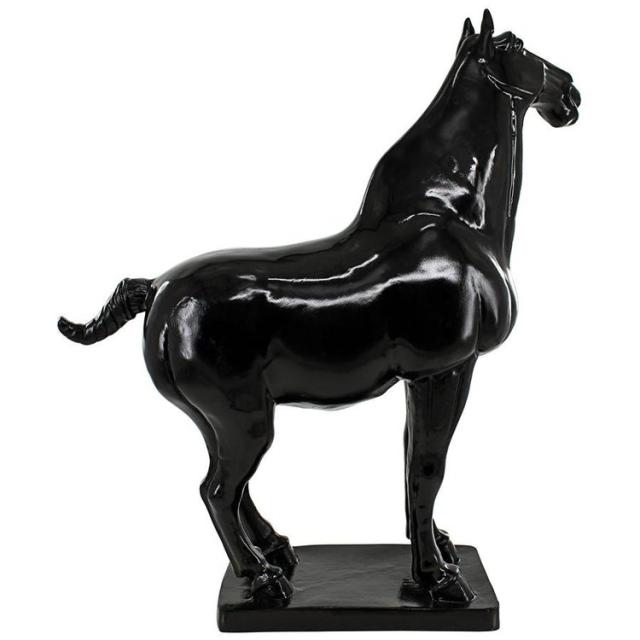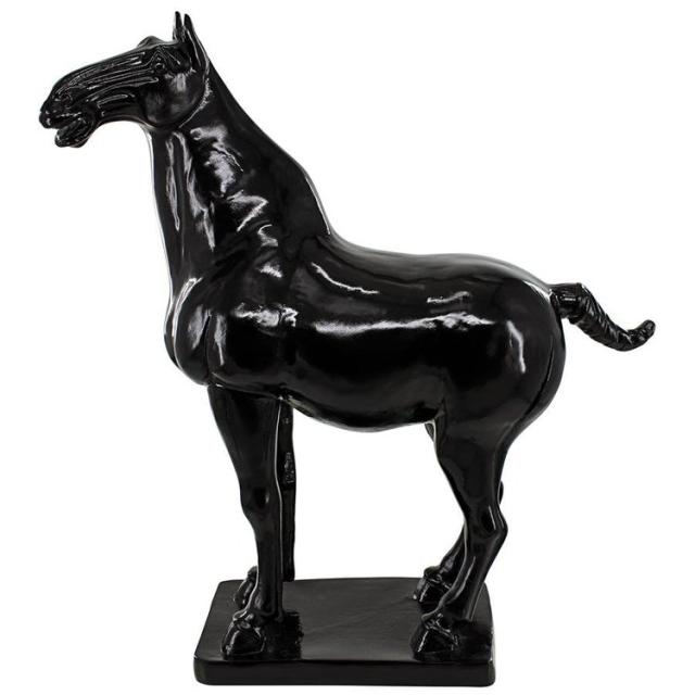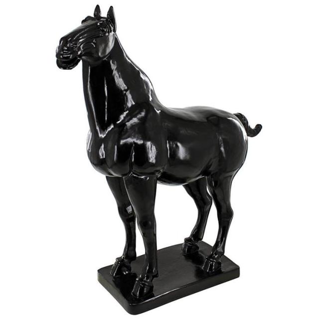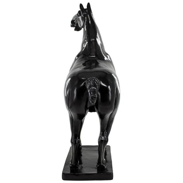 この古典的な唐時代の馬の彫像の豊かで光沢のある黒檀仕上げは、徹底的にモダンなスタイルで馬を高めています。古典的なコレクション品である中国芸術の中で最も愛されているこの動物は、高さ1.5 フィートを超え、自宅のどこにでも、うらやむような装飾アイテムとして立っています。馬の筋肉の動きと、エレガントな馬のエネルギーを、暗示して彫刻されたこのデザイントスカノ社の レプリカ スタリオンは、高品質のデザイナーレジンで鋳造されています。この馬の彫刻 (西暦 700 年頃) は、荘厳なコレクション品として、またはスタイリッシュな彫刻として、家やギャラリーで注目を集めます。