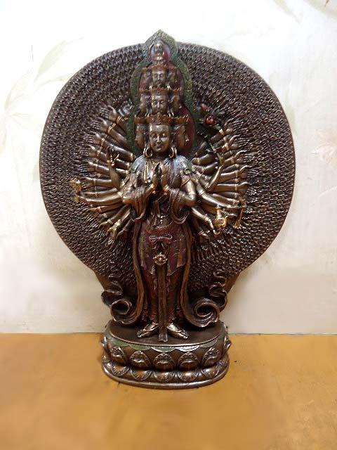 即納!千手観音菩薩彫像聖観音菩薩像仏教彫刻ブロンズ風高さ約31cm開運諸願成就平穏輸入品
