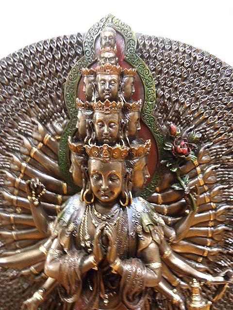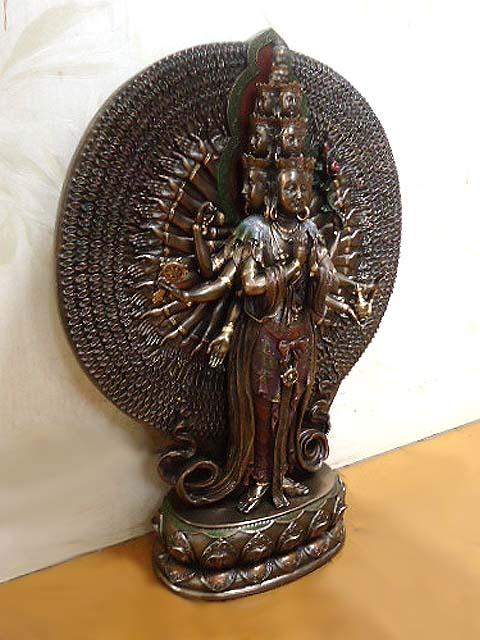 即納」!千手観音菩薩彫像 聖観音菩薩像 仏教彫刻ブロンズ風 高さ約31cm開運 諸願成就・産生平穏 お祝い 贈り物 輸入品