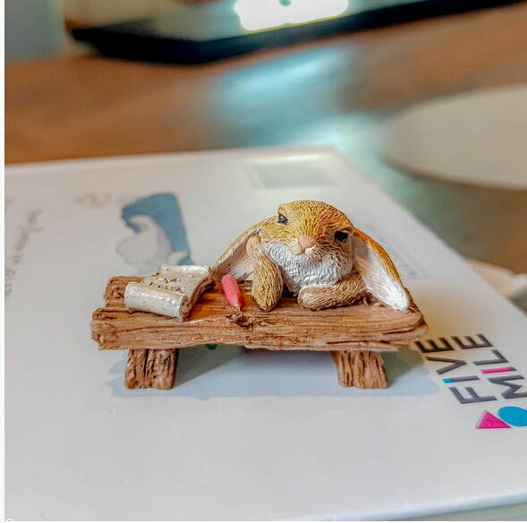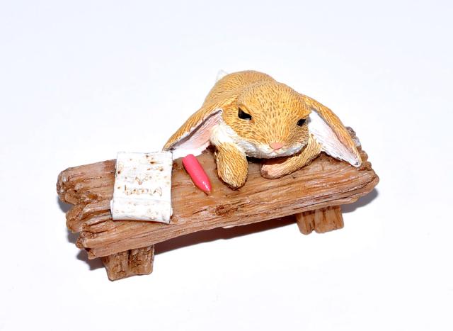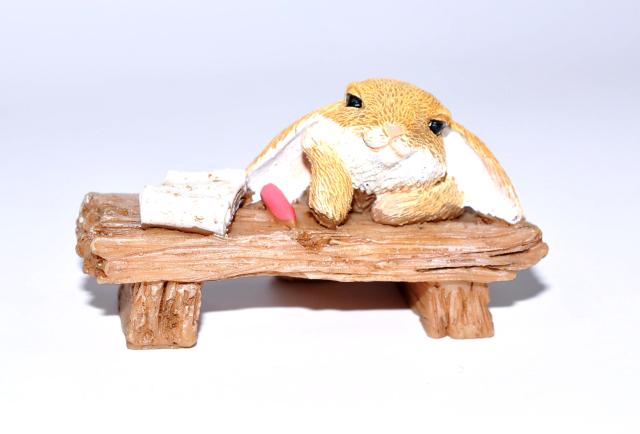 即納!ベンチで空想にふけるウサギ彫像 幅約6cmバニー置物彫刻 贈り物(輸入品)