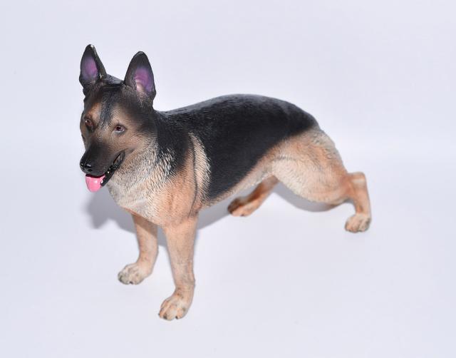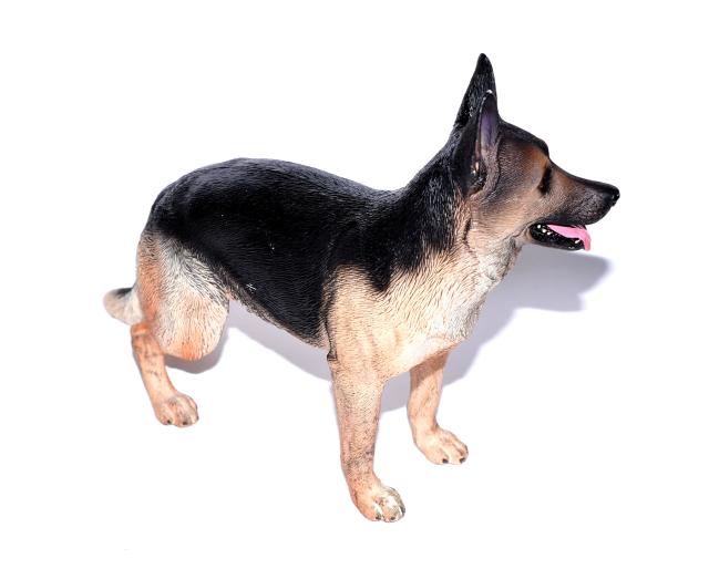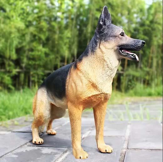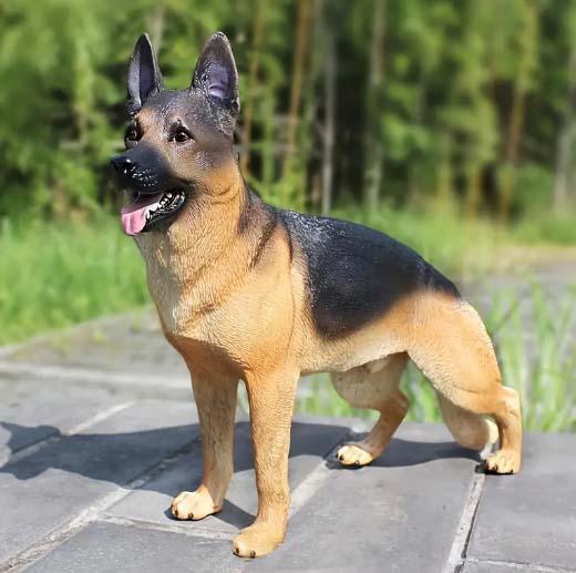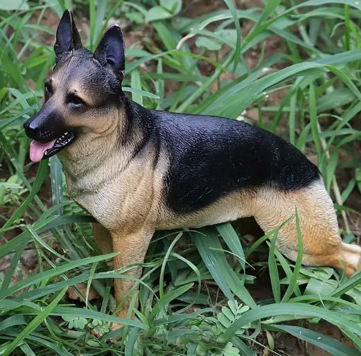 即納!リアルなジャーマンシェパード犬ブラックアンドタン色彫像ミニチュア置物幅20cmホーム彫刻輸入品