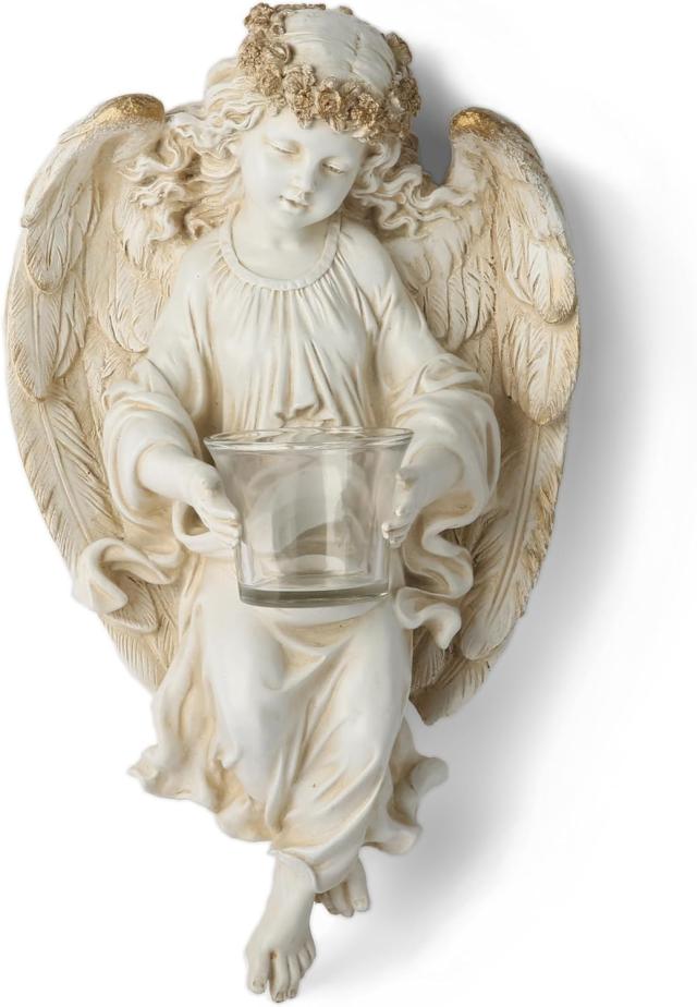 BC Home Decor Angel Statue, Guardian Angel Candle Holder Tea Light,AngelWall Sculpture, Cherub Wall Sconce for Home Hallway, 14" H, Hand