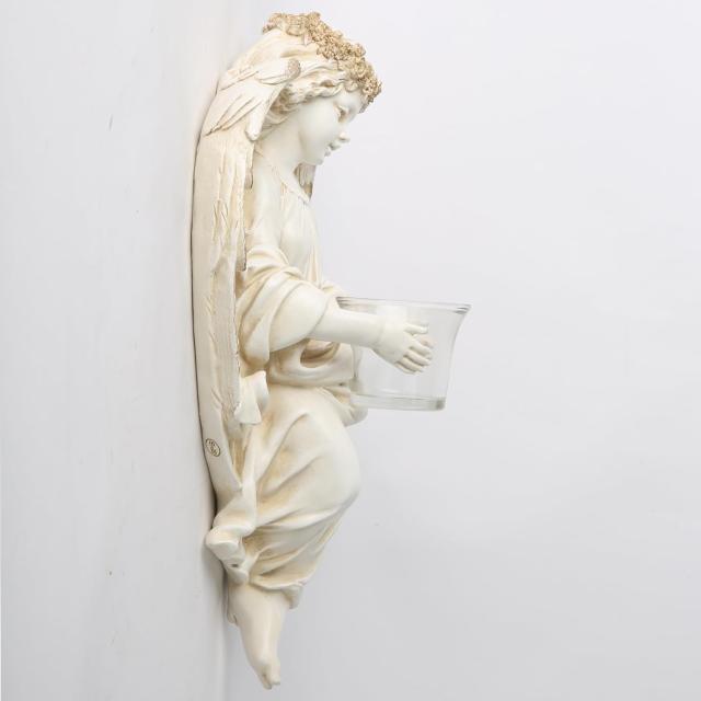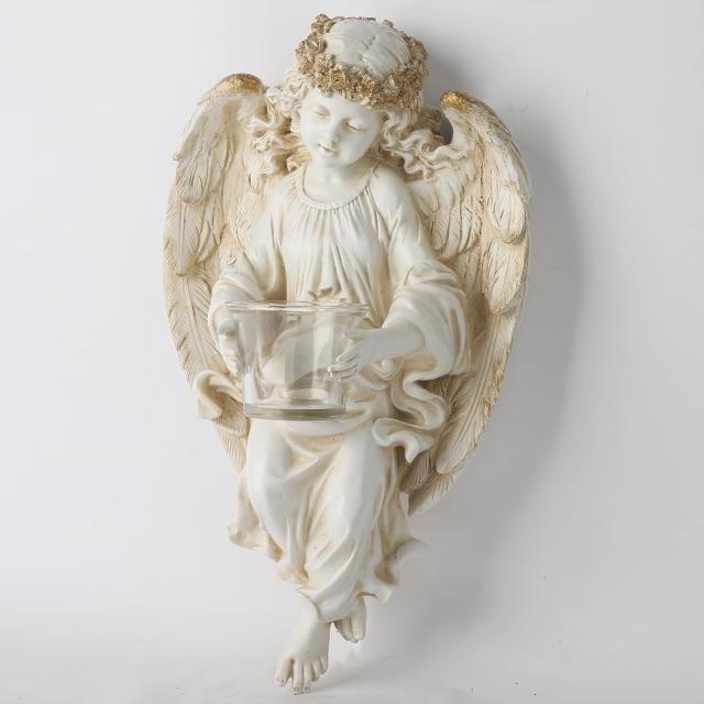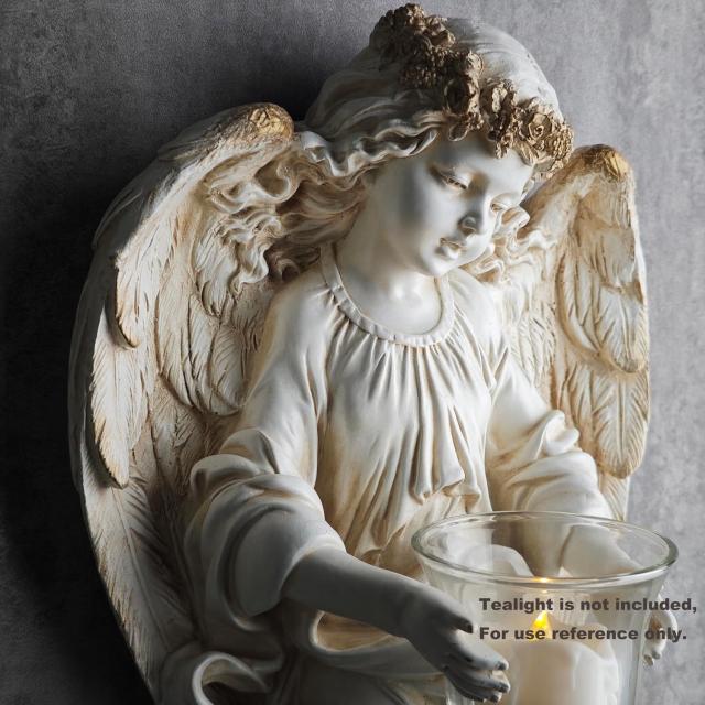 守護天使彫像キャンドルホルダーティーライト天使壁掛け彫刻 玄関ホール用壁付け燭台高さ35cm輸入品