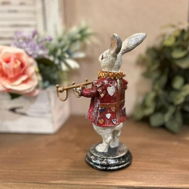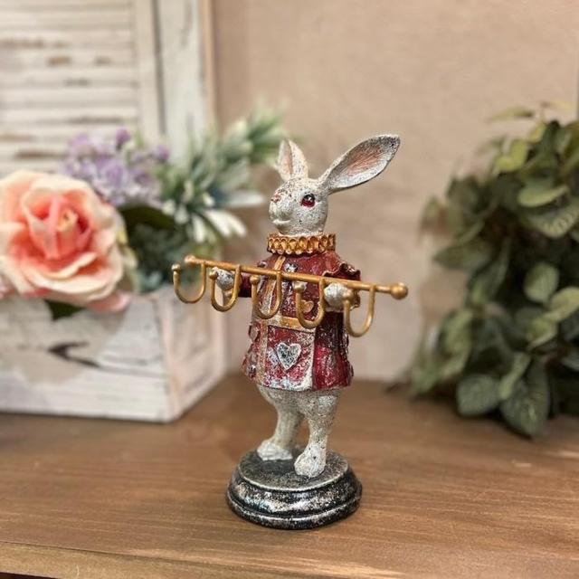 ウサギ アンティーク風オブジェ彫像 不思議の国のアリスうさぎフック兎インテリア置物メルヘン童話ギフト輸入品