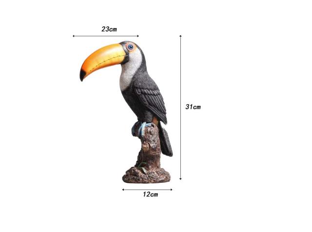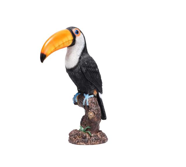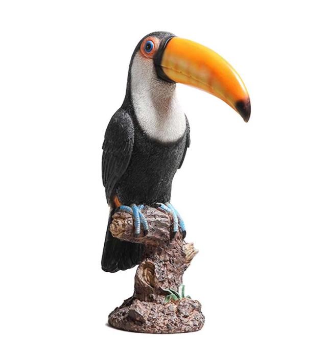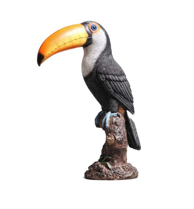Toucan bird (large beak bird) statue living in tropical rainforests, ornament decoration, home garden sculpture