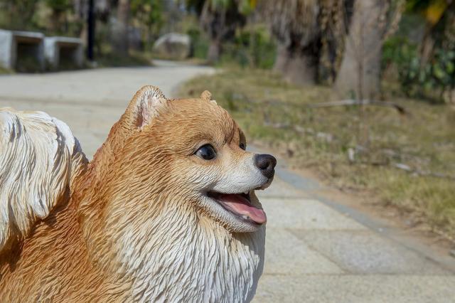 中型犬 立っているポメラニアン ブラウン色の彫像 置物装飾 パティオ ホームクラフトプレゼント 贈り物輸入品