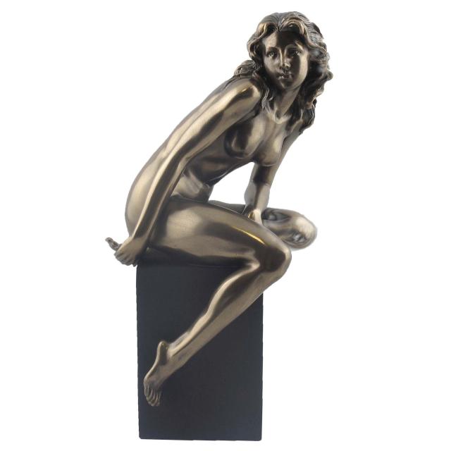即納!台座の上で、遠くを見つめる、ヌード女性彫像 ブロンズ風置物装飾ホームデコレーション プレゼント 贈り物輸入品