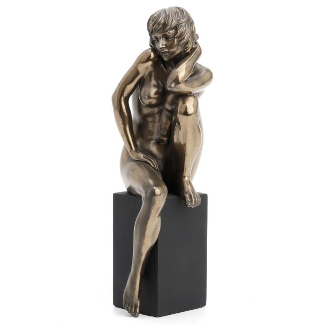 A nude female statue on a pedestal, kneeling and sighing 387 (Bronze)