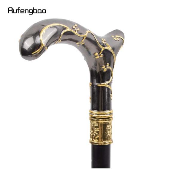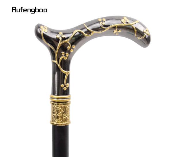 Plum Blossom Design Victoria Style Gold and Black Walking Stick Cane Vintage Style Fashionable Cosplay Walking Stick Cane Height 93cm