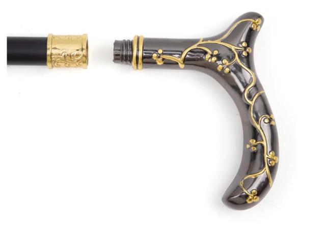 即納!ヴィクトリア風 プラムブロッサムデザイン ゴールド&ブラック色 ウォーキングスティック杖 ヴィンテージ風 ファッショナブル コスプレウオーキングスティック杖高さ 92cmト輸入品