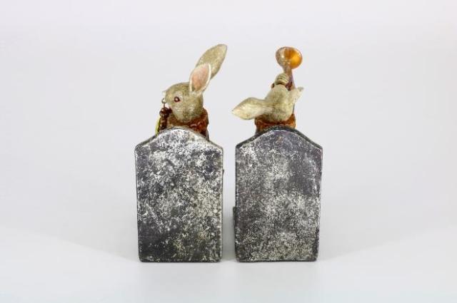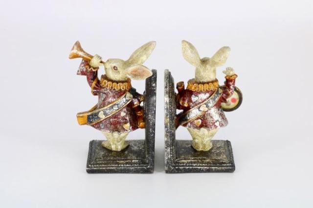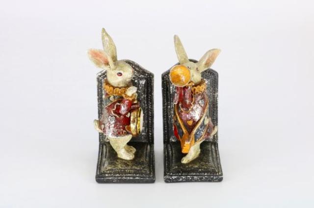 Alice in Wonderland Bookend: Rabbit with a pocket watch and rabbit playing a trumpet Antique Rabbit Object Figurine