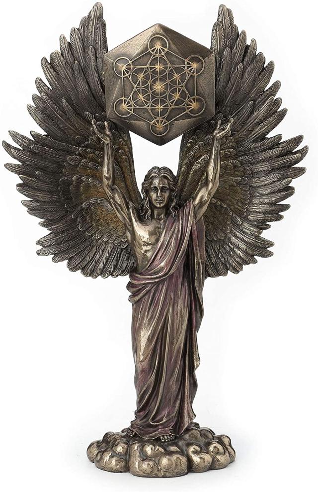 ユダヤ教 大天使メタトロン 聖なる幾何学キューブを掲げる彫像 宗教的置物 彫刻(輸入品)
