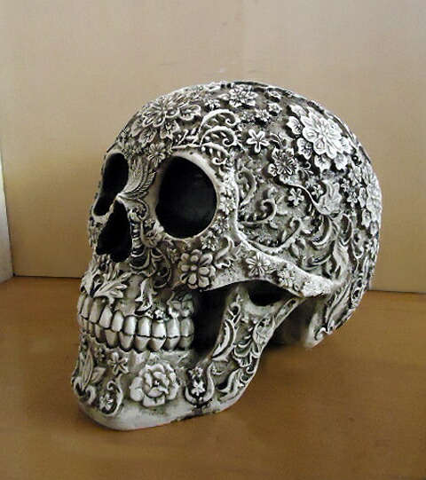 石粉や炭酸カルシウムを混合した樹脂(ポリストーン等)を、型に流し込み、成型させたもので、プラスチックと石の中間のような性質を持っていて、重量感がありますが、細かい装飾性が優れており、質感の再現性も良く高級感を持った仕上げが可能です。落したりすると割れたり欠けたりします。米国でプロデュースされた、美術品の彫像です。