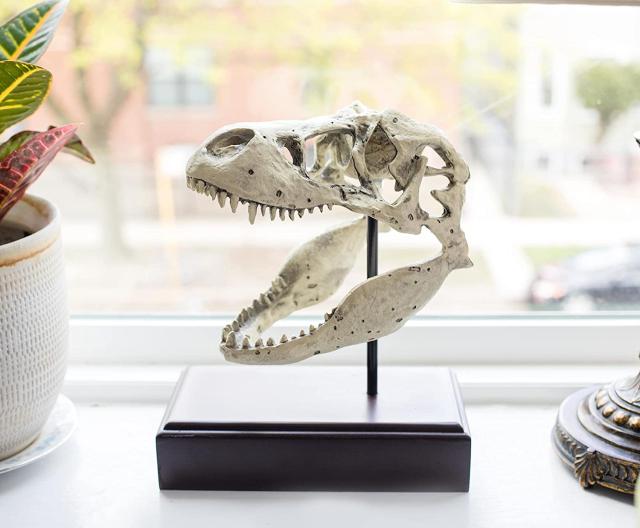 【Jurassic World Tyrannosaurus Rex Skull Resin Replica - 9x8-Inch TRex Dinosaur Head Statue - Realistic Model Skeleton Decoration - Home &Office Decor, Shelf Display - Decorative Dino Fossil Sculpture】