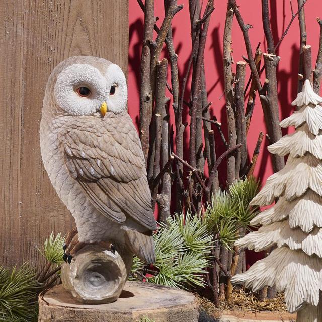 非常にリアルなデザインの、この庭のフクロウの彫像は枝の上に立っているので、庭が楽しくなり、庭にフクロウの魅力を沢山加えます。