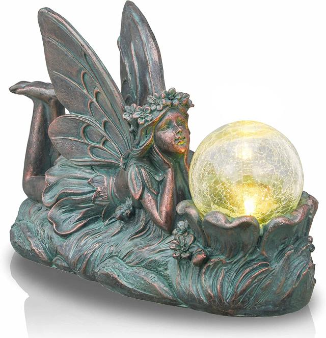 【TERESA'S COLLECTIONS Garden Decor Fairy Sculptures & Statues, YardDecor, Solar Garden Fairy Statues and Figurines Outdoors, Patina Bronze13.8 Inch】