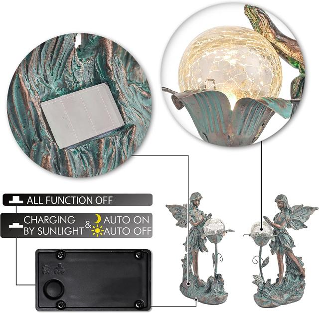 ガーデン フェアリー ソーラー屋外彫像 ヒビの入ったガラス妖精ブロンズ風彫刻置物
