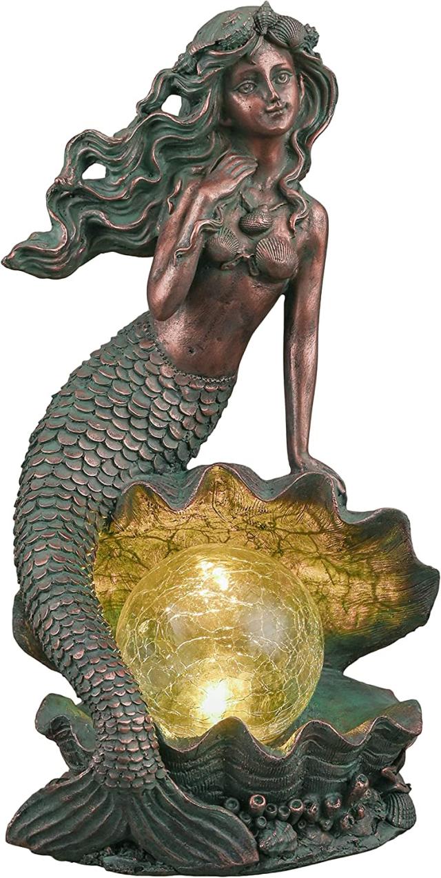マーメイド ガーデン人魚の彫像、屋外妖精の彫刻、ソーラーライト付き ブロンズ風 パティオ(輸入品