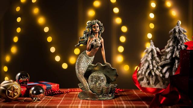 丈夫な樹脂素材で作られたこの人魚の彫刻は、防水性と耐退色性に優れています。