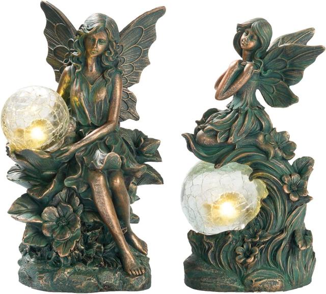 【TERESA'S COLLECTIONS Mermaid Garden Sculptures & Statues, OutdoorFairy Statue, Solar Garden Fairy Decor, Garden Figurines Lawn Ornamentsfor Patio Yard Decorations (Bronze)】