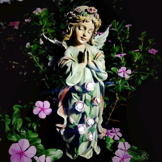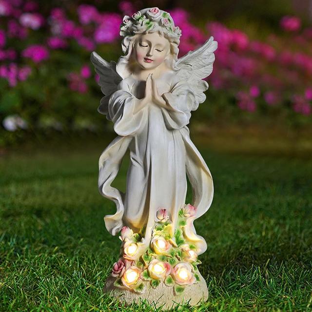 高さ 約48cm 座っている守護天使と子供のガーデン彫像 装飾用彫刻置物/ 庭園 芝生 贈り物(輸入品