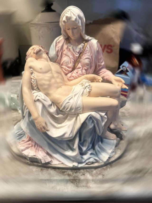 【10.63 Inch Pieta and Michelangelo Decorative Figurine, Pink and Blue】