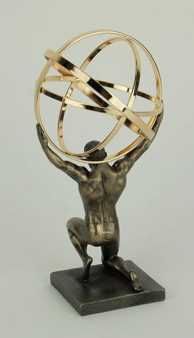 【Veronese Design 9" Tall Atlas Carrying Celestial Sphere Statue ColdCast Resin Antique Bronze Finish Golden Finish Sphere】