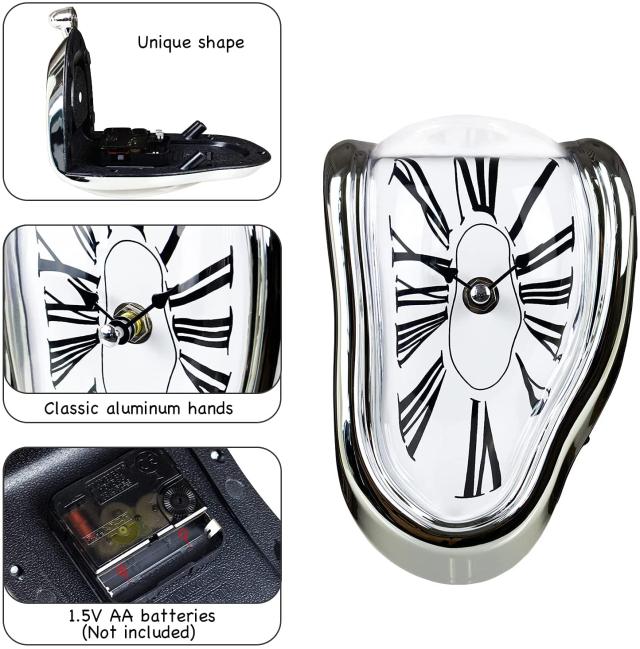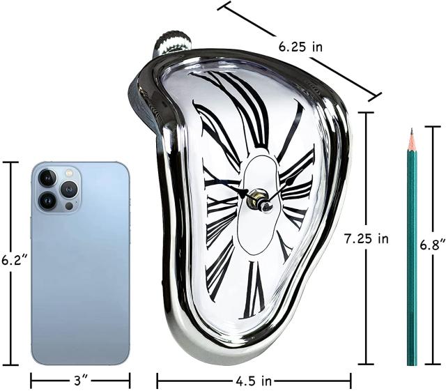 【FAREVER Melting Clock, Salvador Dali Watch Melted Clock for DecorativeHome Office Shelf Desk Table Funny Creative Gift, Silver】